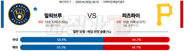 2026-04-26 MLB 밀워키 피츠버그 MLB분석 무료중계 스포츠분석