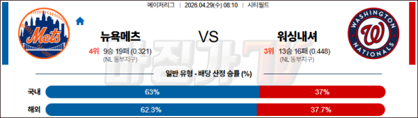 2026-04-29 MLB 뉴욕메츠 워싱턴 MLB분석 무료중계 스포츠분석