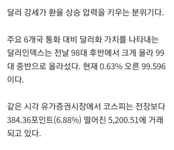 [유가 100달러] 환율 1,500원 목전…코스피 5,200 아래로